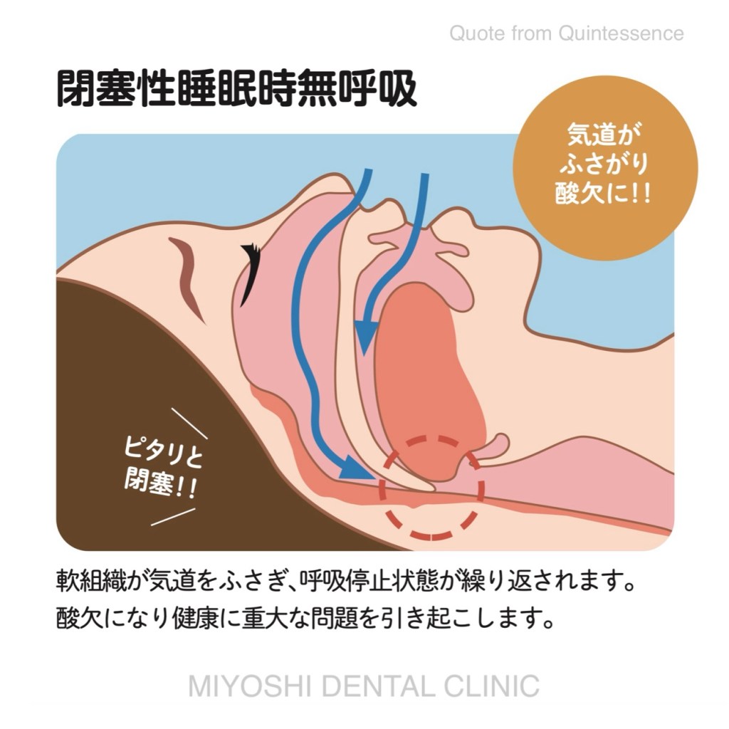 軟組織が気道をふさぎ、呼吸停止状態が繰り返されます。酸欠になり健康に重大な問題を引き起こします。